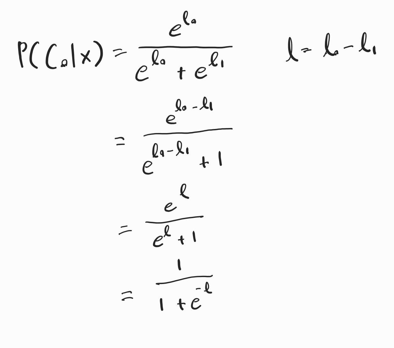 ※l = l0 - l1 : log odds or logit / 클래스 0일 확률 대 클래스 1일 확률의 로그 비율
