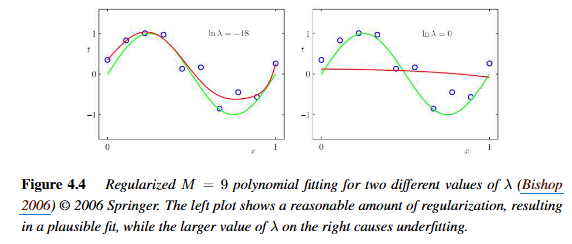 오른쪽은 정규화 항의 영향이 크기 때문에, 과소적합이 됨.