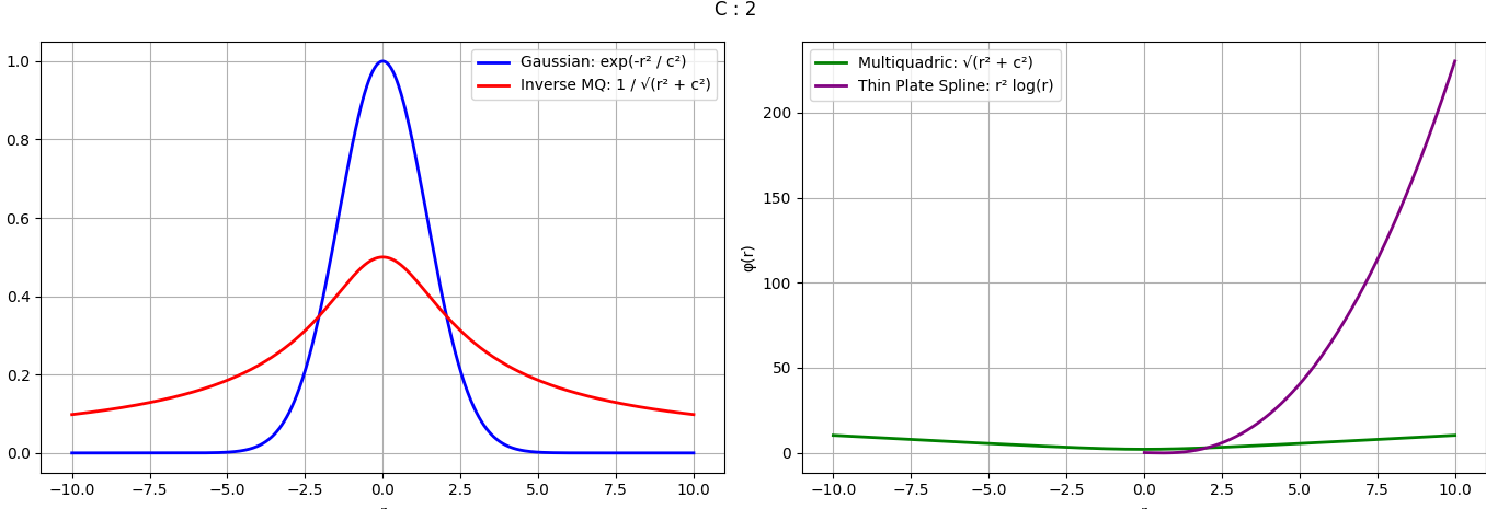 보통 사용하는 4개 radial basis function에 대한 그래프